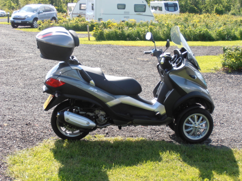 Our next decision was to buy a Piaggio MP3 300LT scooter for our local transport needs. Mr H loves it and has gone all retro with a fish-tail parka, levis, open faced peaked helmet, Ray Bans and a harrington jacket! We had to run the engine in before leaving for Europe again so we have been whizzing about a lot. We did a run from York to Hull then to Bridlington and Scarborough and it wasn't even a bank holiday. I am learning the rules of being a pillion passenger and have developed the following tricks to stay alive;
